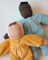 The doll's face is hand painted in a traditional Waldorf way with few features enabling babies and children to use their imagination and let play and creativity run free.