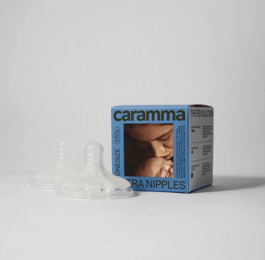 Extra nipples that fit both sizes of the Caramma support bottles (small 150 ml and large 300 ml.).