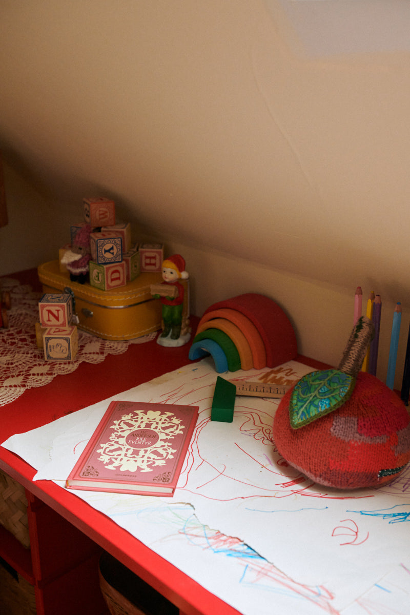 The most wonderful knitted apple from the whimsical world of Helle Høgsbro Krag, owner of the Danish brand Creme de la Creme alà Helle.