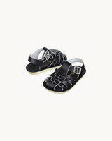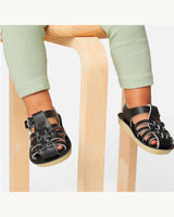 The perfect summer sandal for little explorers. This is Sailor, a closed toe sandal for babies, here in a black colour.