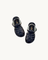 Salt-Water Sandals are the most adorable sandals for little feet. These sandals have a fisherman sandal style lattice across the front, protecting little toes while learning to take first steps. Made from 100% waterproof leather, rust proof buckles and a spongy soft sole, they are a great summer sandal. which can be paired with everything.
