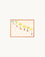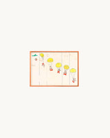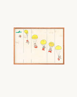 This wonderful print features Babar coming down in his yellow parachute. The poster has a vintage look with tainted paint along the edges.