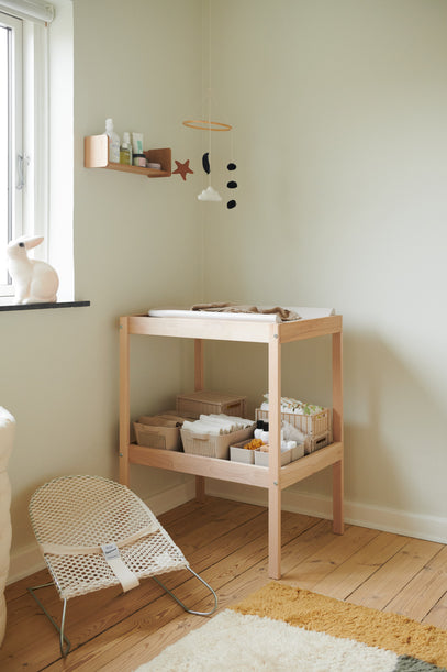 The changing table is from Ikea, and has a simple but spacious design. In the window sits a Bunny Lamp that creates a soft light at night – perfect for changing diapers during the night.