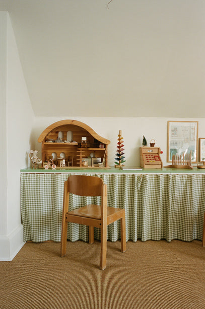 The table top has been painted in a soothing green tone, that compliments the earthy, brown tones from most of Eva's toys beautifully.
