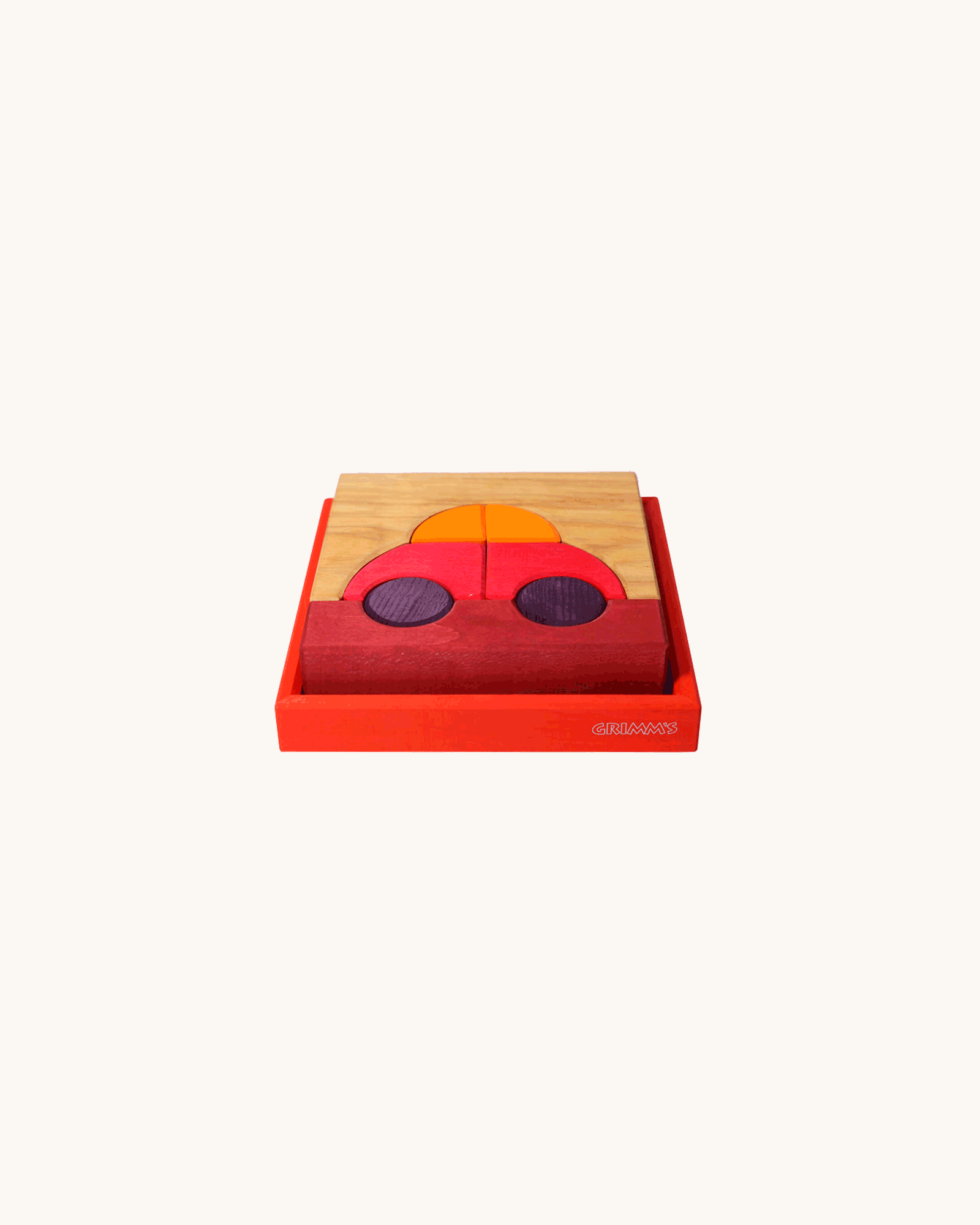 The wooden blocks come in a wooden tray that measures approx 18 cm x 18 cm. The actual blocks are approx. 4 cm thick and made of durable, high quality wood.