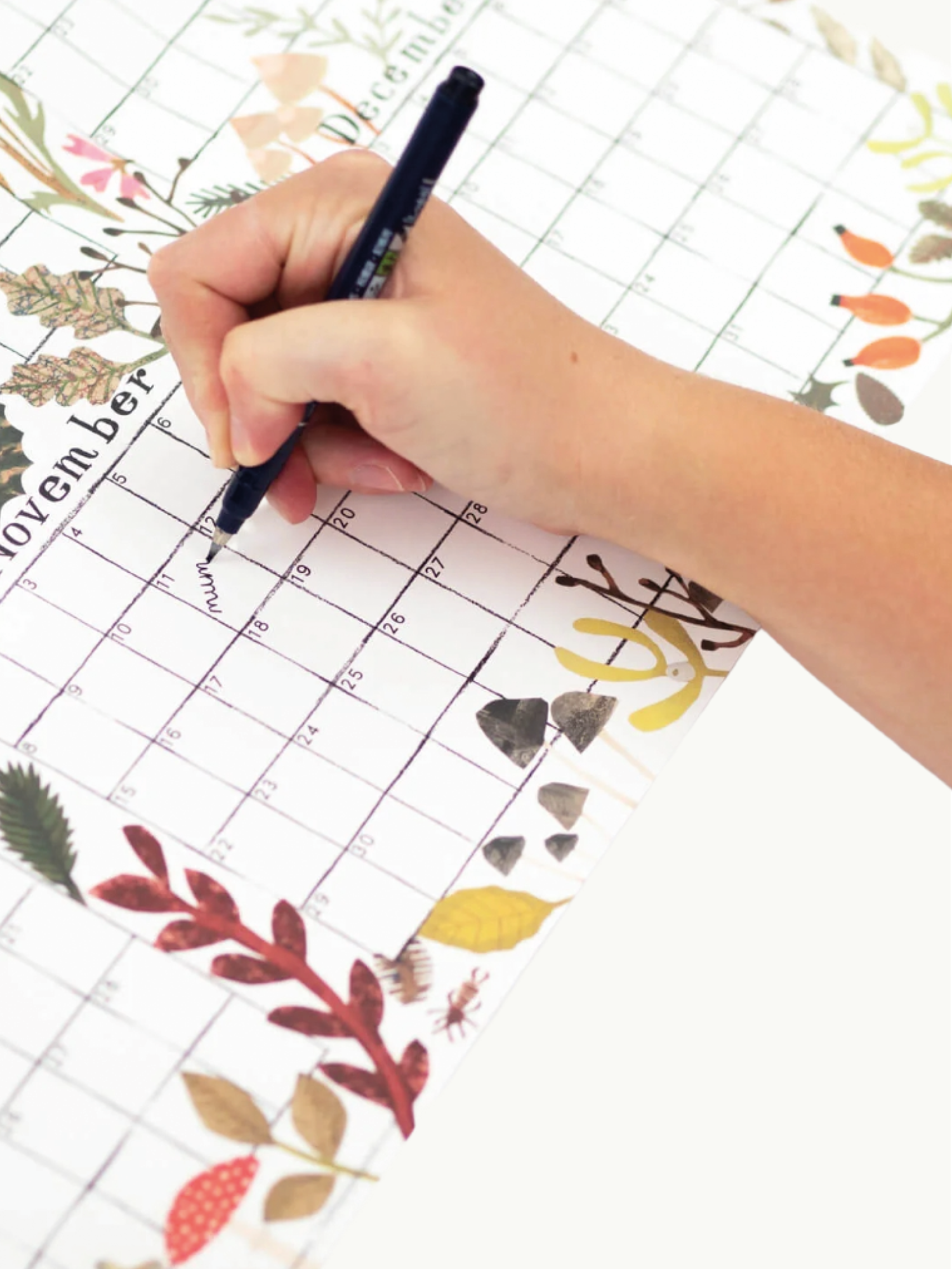 A lovely birthday calendar that helps you and your child remember all the important days. Each month is decorated with hand-collaged plants, animals, and fungi in beautiful colours, reflecting the changing seasons.