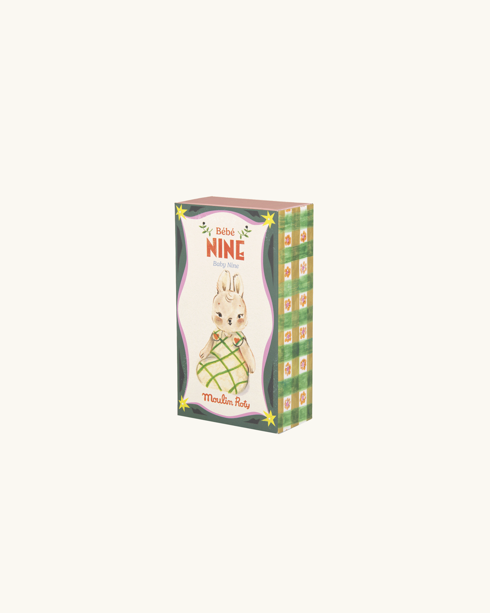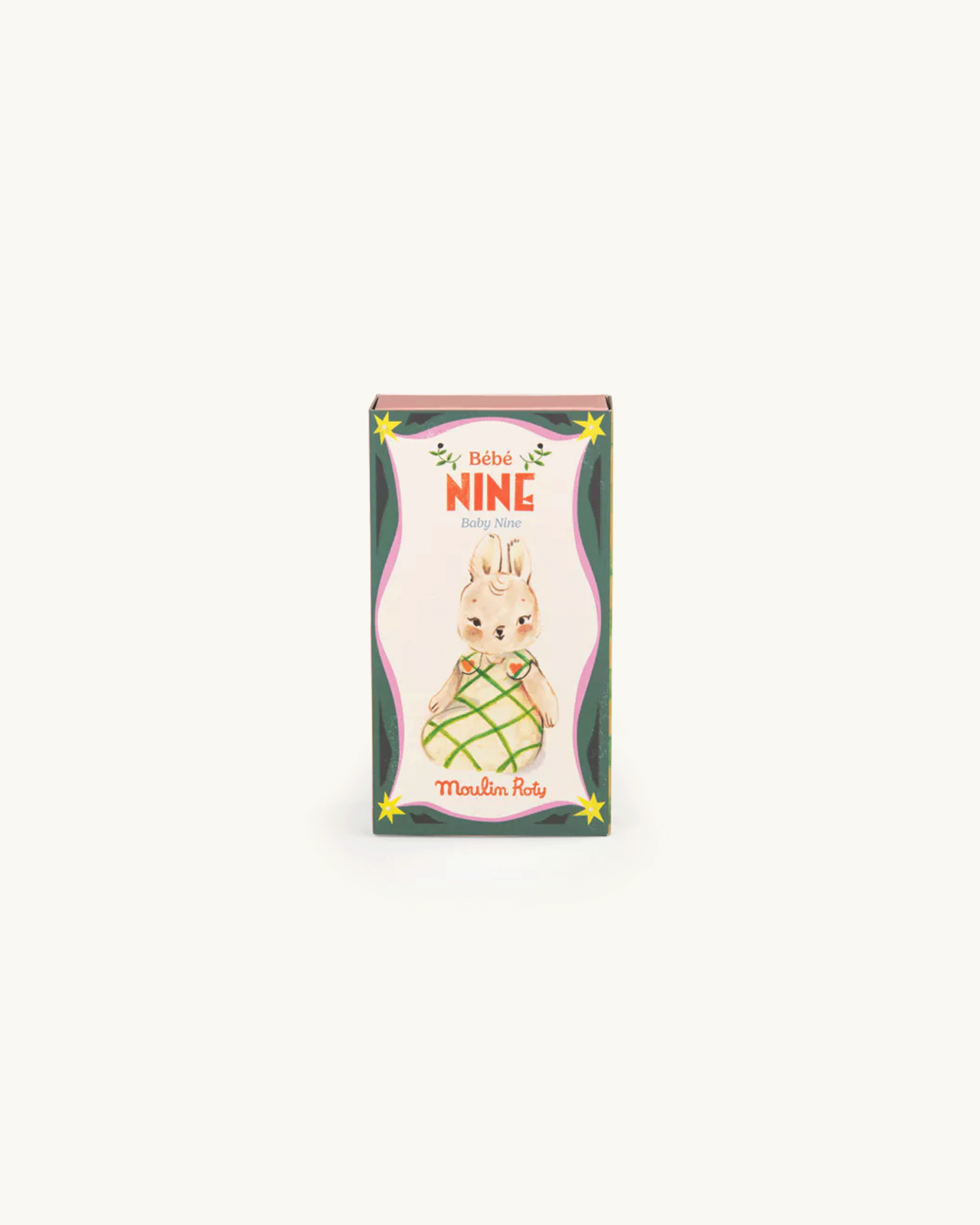 The bunny comes in a box designed like a vintage matchbox, that can be opened and closed. The duck can be tucked in its small sleeping bag at nighttime or when it's time for a nap.