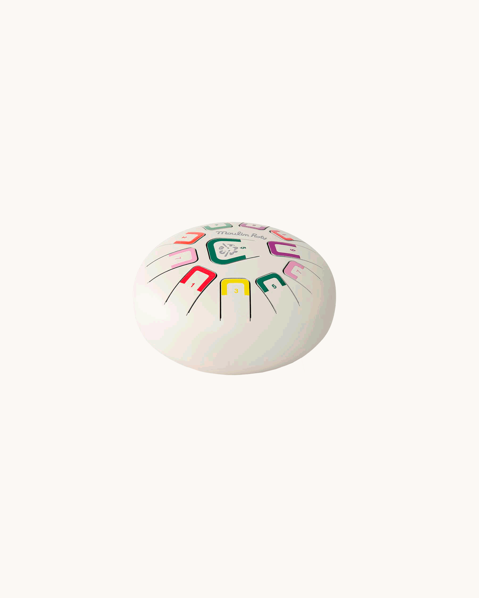A tongue drum is a fantastic instrument and is perfect for introducing children to music, percussion and rhythm. This drum has a soothing sound and the 11 numbered and colour-coded notes may be played with hands, fingertips or drumsticks.