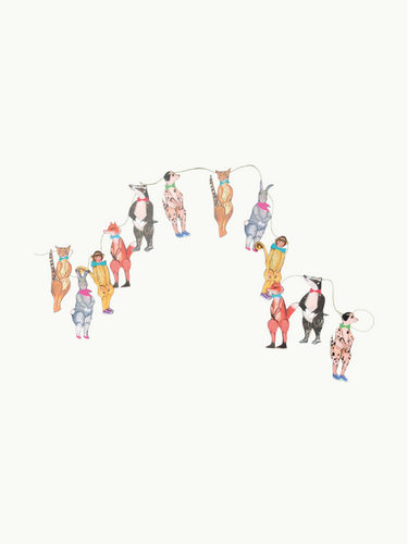 A wonderful garland featuring a total of 12 cheeky but cute animals, including a badger, monkey, dog, cat and rabbit.