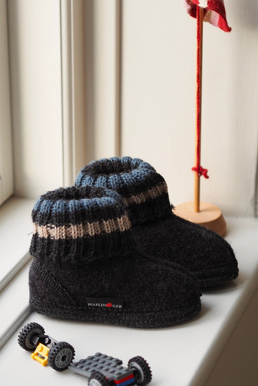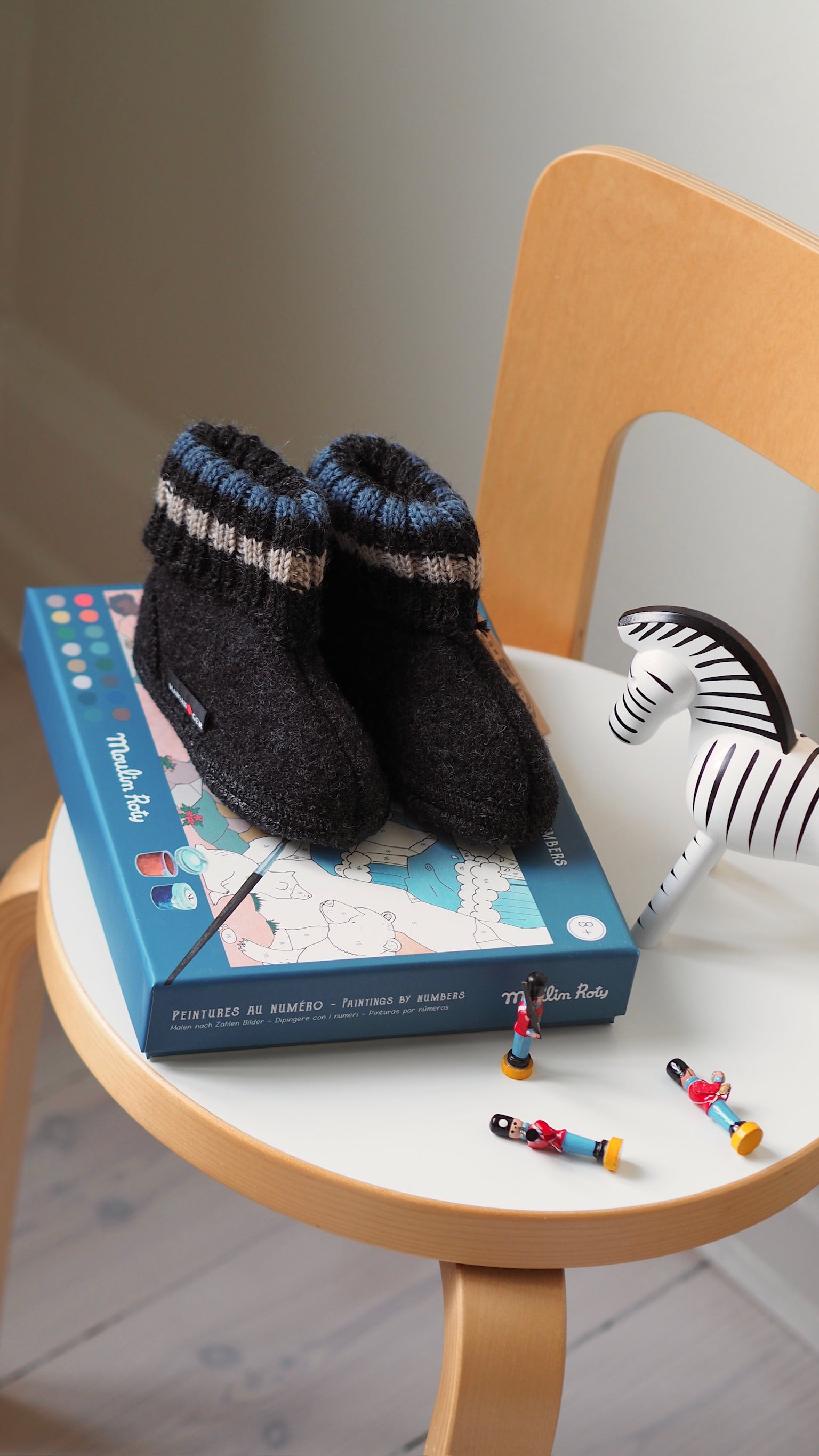 The Wool Shoe is a wonderful indoor shoe that comes with a sock-like top, that keeps your child warm and comfortable. The "sock" ensures that the shoe stays on the foot, but it is fully bendable and flexible and with no hard edges that may rub into the lower ankle as your child bends or sits downs.