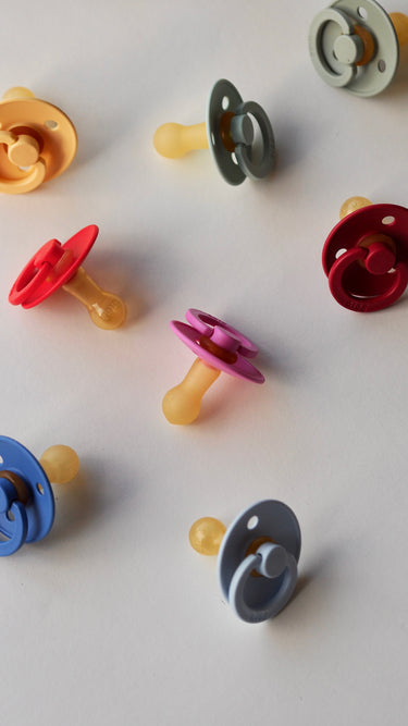 Matching our handmade pacifier clips, these 100% natural rubber latex pacifiers come in a variety of beautiful colours.