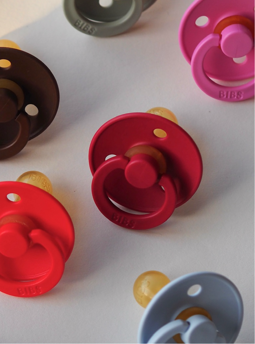 The Bibs classic pacifiers are designed and produced in Denmark, and are available in the "Bibs size 2". This size is suitable for most newborns and up to the day where a pacifier is no longer needed. See exact measurements under the tab 'Product details'.