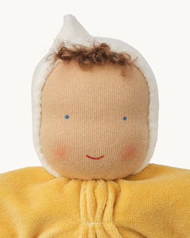 A beautiful, soft and cuddly doll i a wonderful yellow colour.