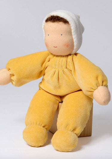 The doll's face is hand painted in a traditional Waldorf way with few features enabling babies and children to use their imagination and let play and creativity run free.