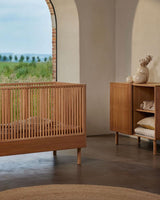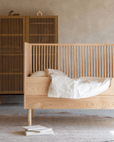 The Hai No Ki Crib is made from ash, which is sturdy and beautiful. The grains of the wood are visible. As a result, the crib has a very natural look, which looks great in both neutral as well as colourful nurseries and kids rooms.