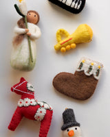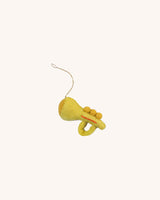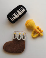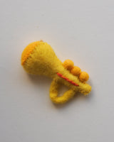 A cute and decorative trumpet Christmas ornament made from wool.