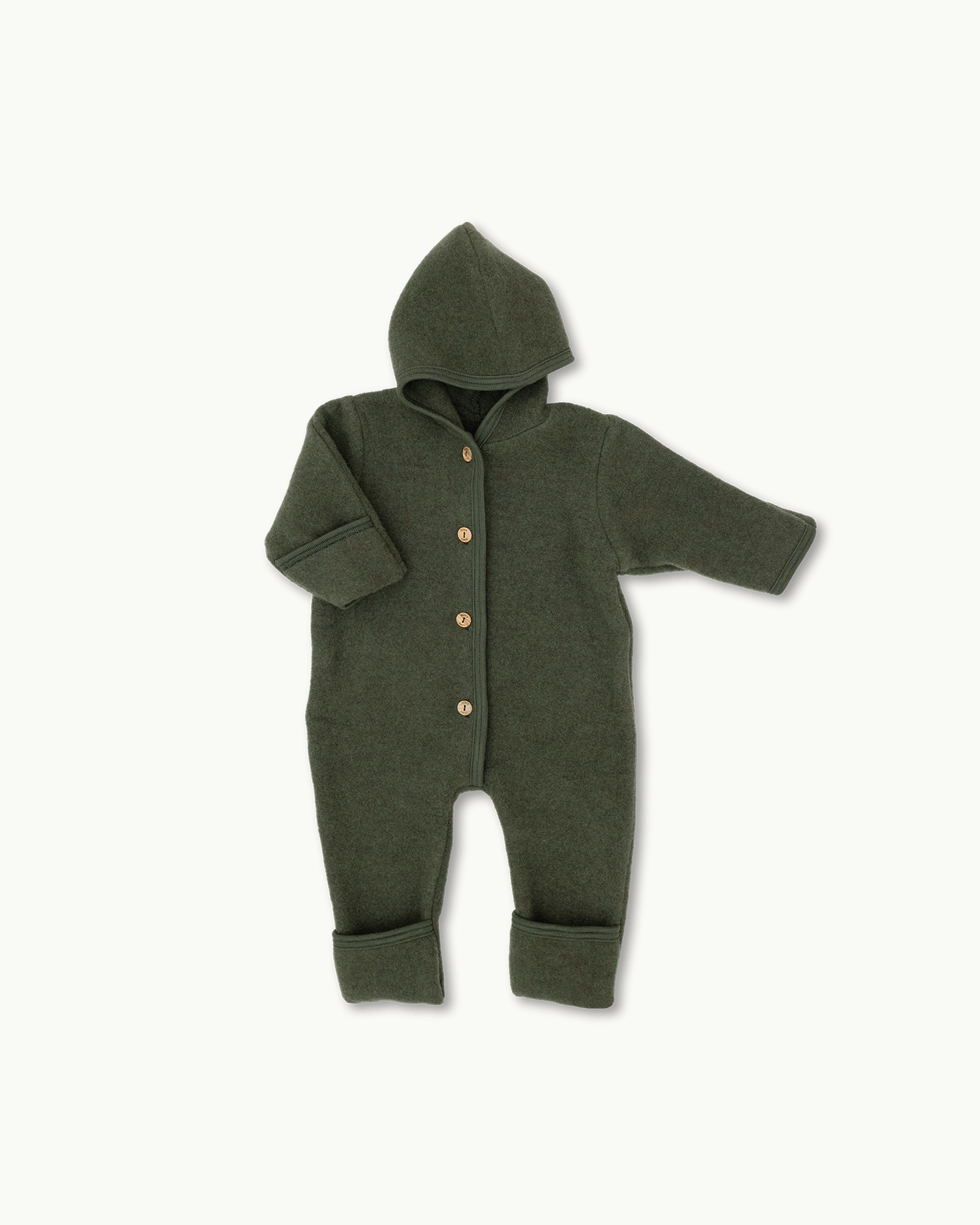 Keep your baby warm with this soft baby romper, made from certified organic wool fleece.