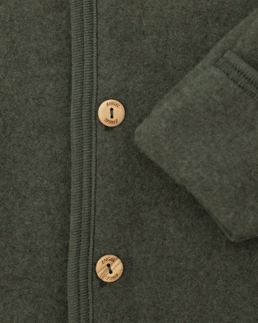 A classic baby suit that comes with a hoodie, rounded neck, classic fit and long sleeves. It comes with wooden buttons that go down the front.