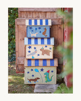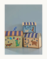 Use it for toys, teddies, diapers, shoes or whatever you would like to store when not in use. This series is available in three sizes, and features an elephant, a lion, and a giraf.