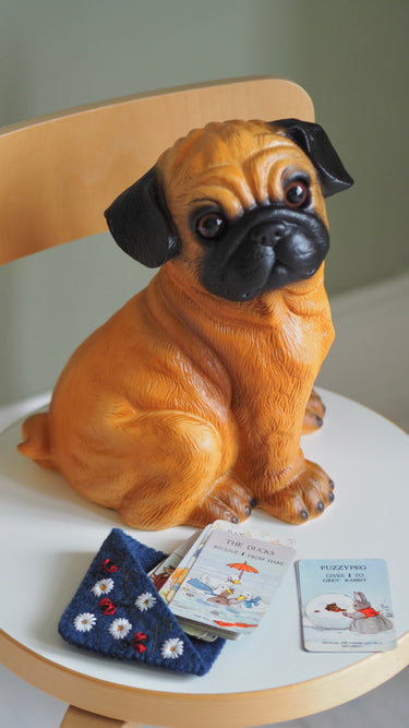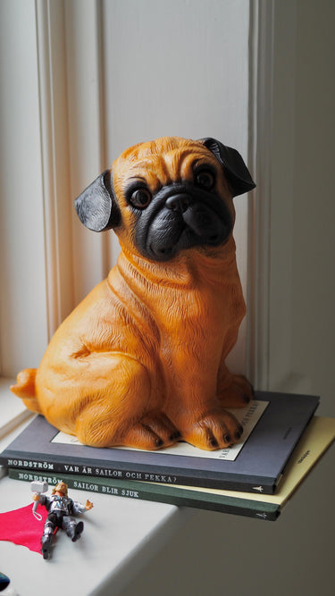 The Bulldog lamp is perfect for your kid's room or baby's nursery. Its large size makes this lamps perfect by the bed on the floor or on a little side table, or maybe in the window sill, if there is enough space for it there.