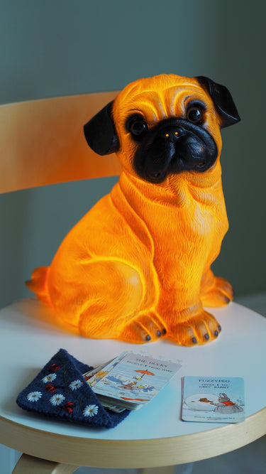 A very sweet Bulldog Mops Lamp. This lamp gives off a wonderful, calming soft light.