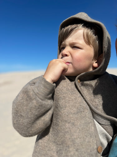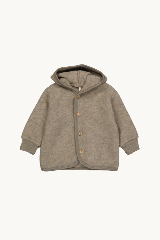 Keep your baby warm with this soft baby jacket, made from certified organic wool fleece.