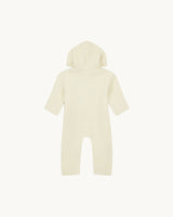 A classic baby suit that comes with a hoodie, rounded neck, classic fit and long sleeves. It comes with wooden buttons that go down the front.