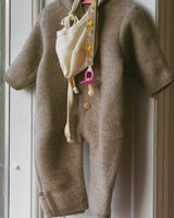 Keep your baby warm with this soft baby romper, made from certified organic wool fleece.