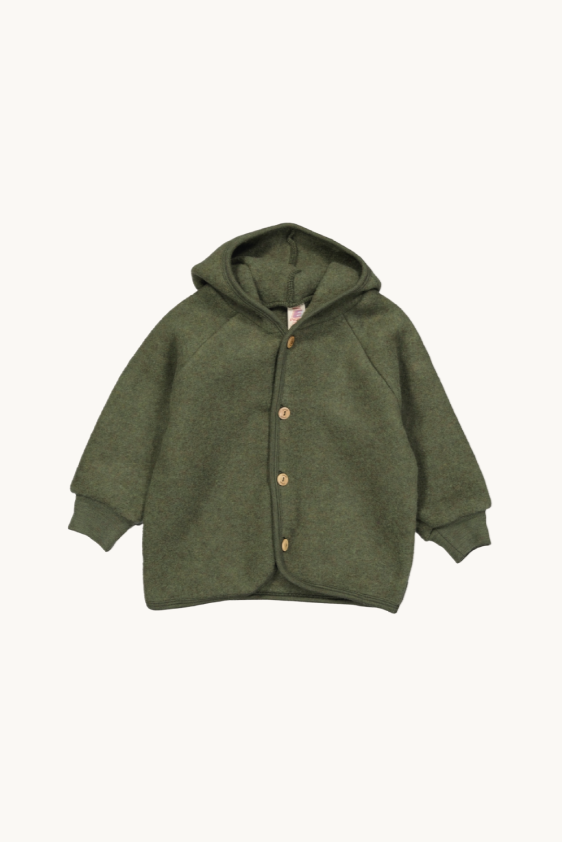 Keep your baby warm with this soft baby jacket, made from certified organic wool fleece.
