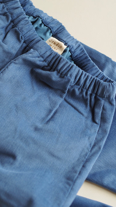 Made from 100% fine corduroy, these blue pants are easily worn with a long sleeved shirt or a soft cardigan. A style made to fit boys and girls, the pants are sure to be worn until they no longer fit.