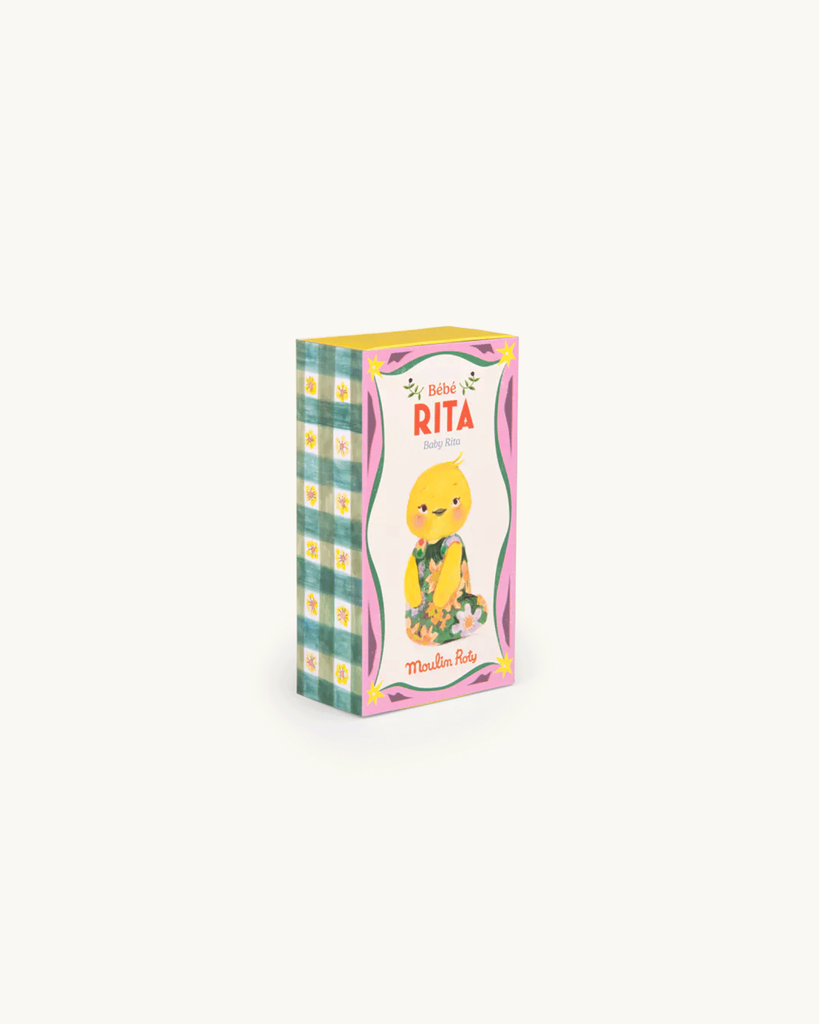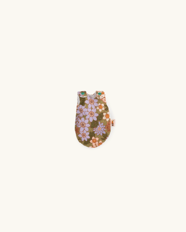 The duck comes in a box designed like a vintage matchbox that can be opened and closed. The duck can be tucked in its small sleeping bag at nighttime or when it's time for a nap.