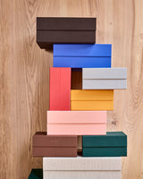 The Hako Storage Boxes come flat-packed and are easy to assemble. Available in three sizes and different colors.