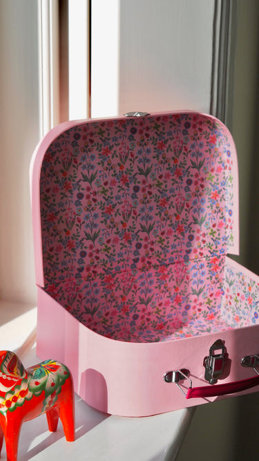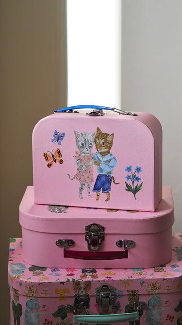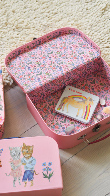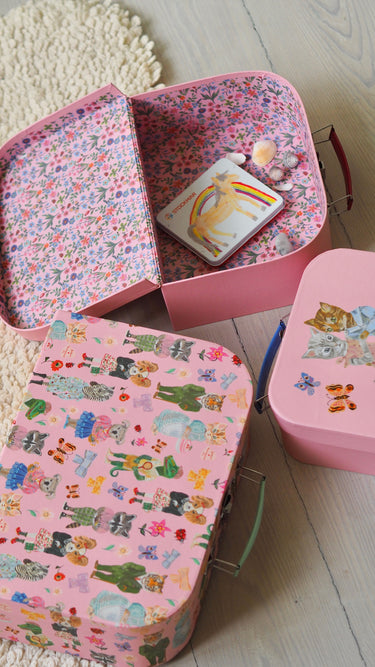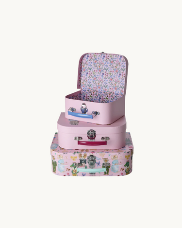 A wonderful suitcase set featuring artwork by Nathalie Lété - perfect for treasures or for carrying stuff around the house, into the garden or on short trips.