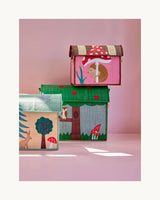 Pretty colours, a practical lid (the roof of the house), and wonderful, embroidered details make this storage basket suitable to place anywhere in the house.