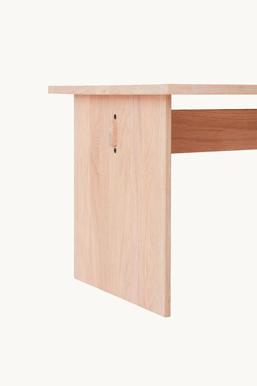 The table is produced in Europe and made from 100% solid oak. It may be used just as is, paired with any other kid's chair for a contrasting look – or pair it with the Arca Bench for a Scandinavian look in solid, natural wood.